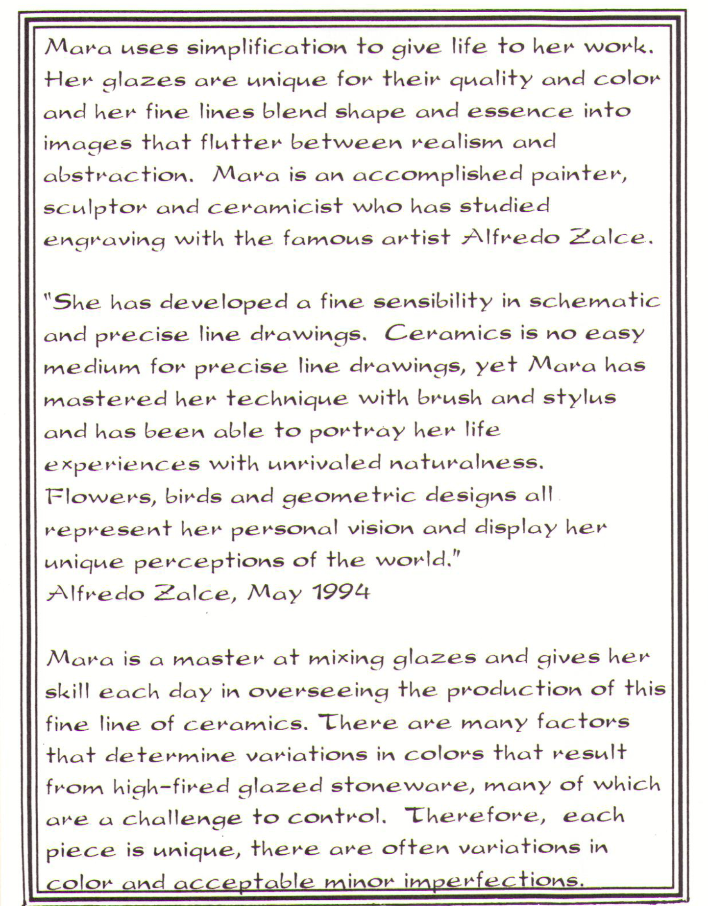 This Mara mug design is a great way to start your day and hails from Galleyware's popular hand-etched, glazed and finished mug collection! 4.5 inches tall and holds up to 16 oz. Microwave and dishwasher safe, with lead-free paint. Made in Mexico.