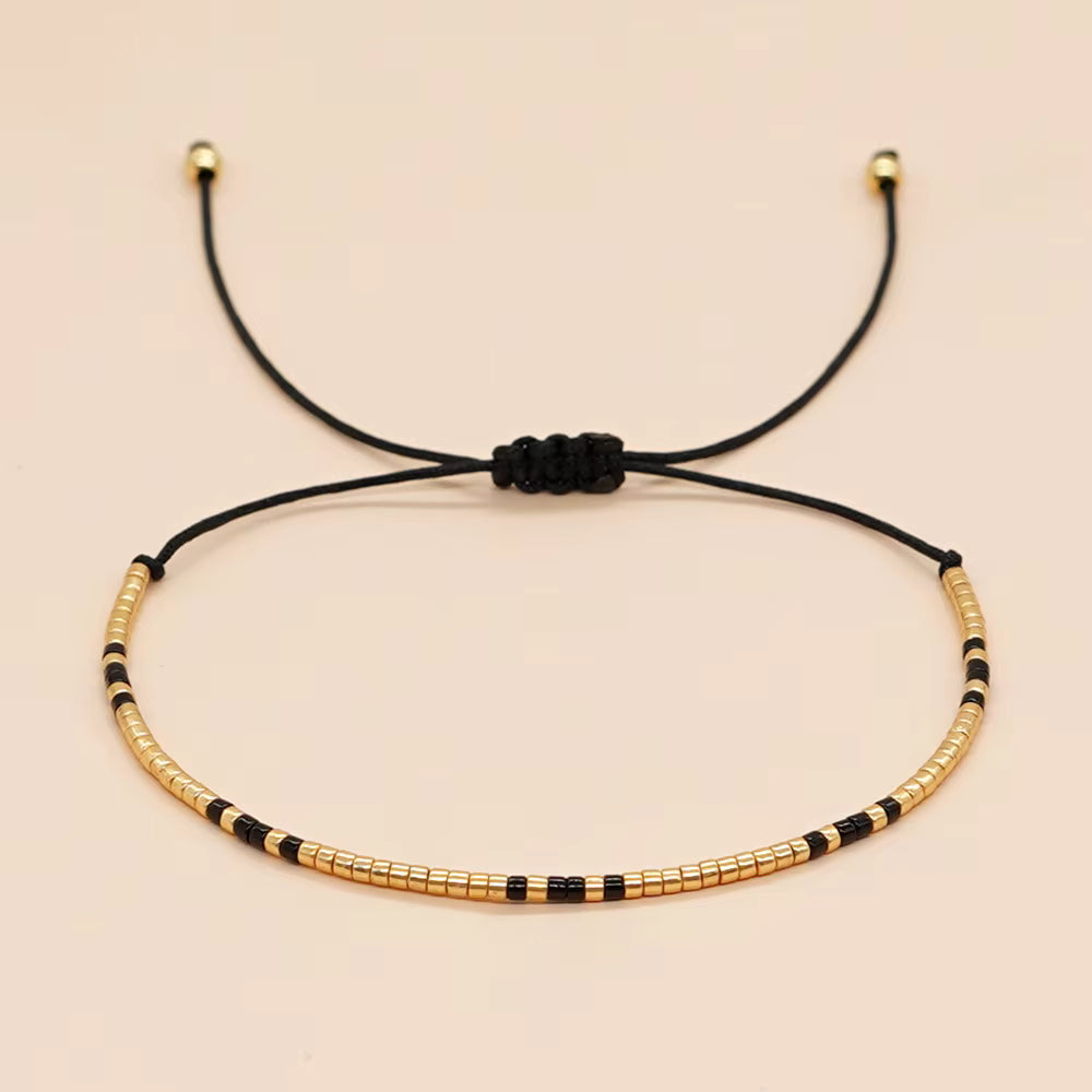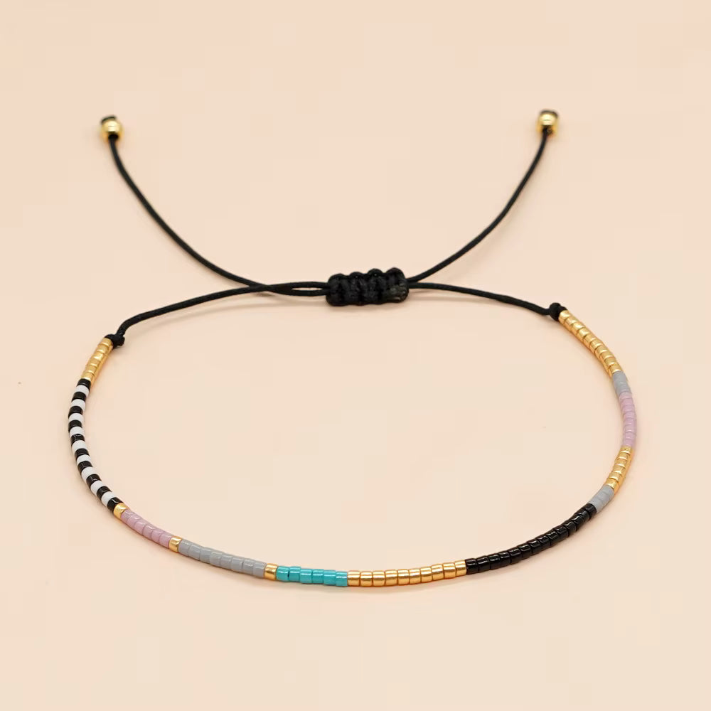 Add a pop of playful charm to your look with this gorgeous Miyuki Bead Slider Bracelet. Featuring a black and gold design with multi coloured beads , it’s perfect for stacking or wearing solo. Lightweight and adjustable, it slides on effortlessly to brighten any outfit with a subtle sparkle! Features an adjustable slider so will fit most wrists.